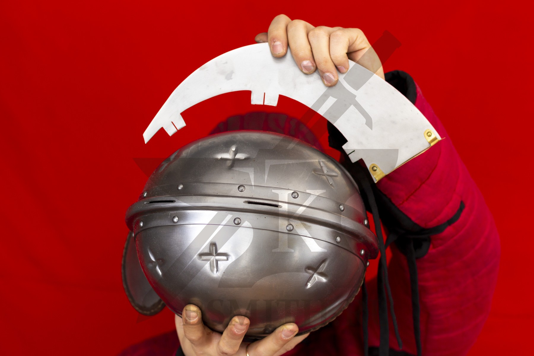 Артефакт, по которому сделан шлем, был найден в 1909 году в Венгрии, на месте бывшего римского укрепления (военного городка) Intercisa в провинции Нижняя Паннония, между Мурсой и Аквинком (современный горош Дунауйварош, Венгрия). Фото артефакта представлено среди фотографий шлема.