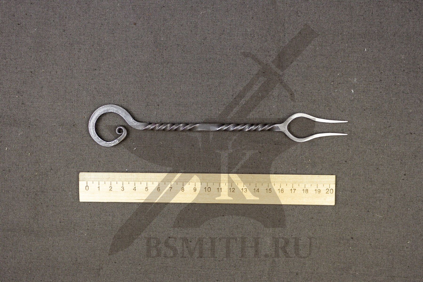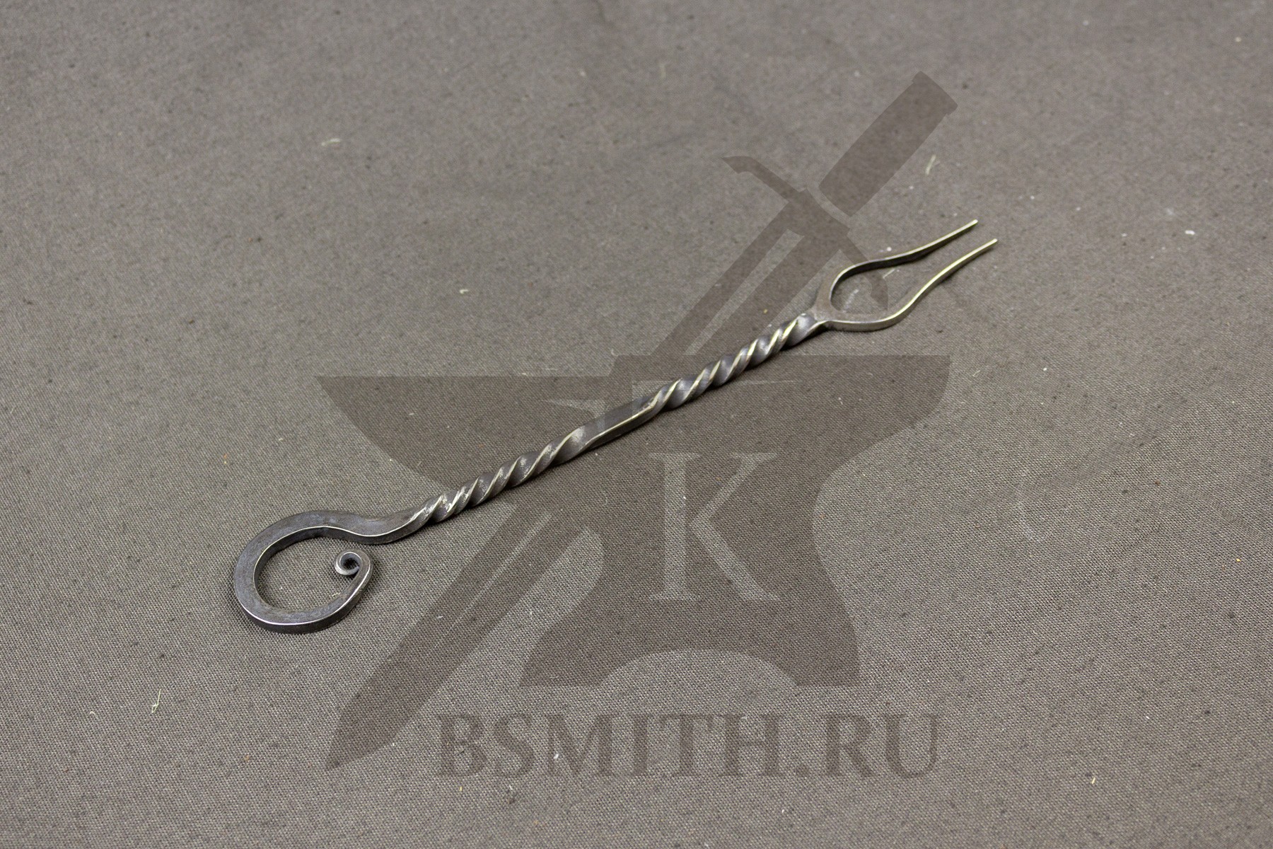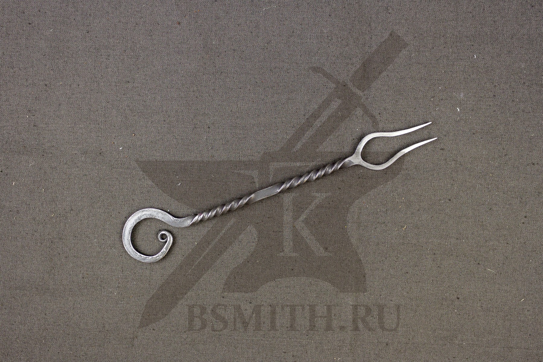 Вилка кованая с двумя зубцами. Вариант с простой торсировкой на рукояти.