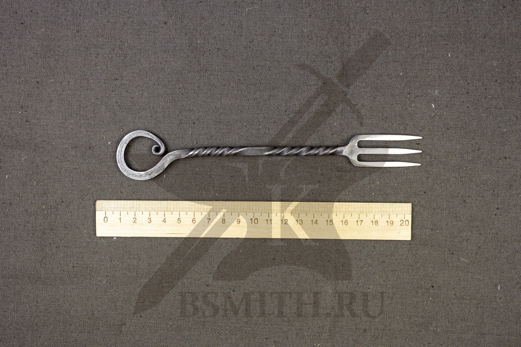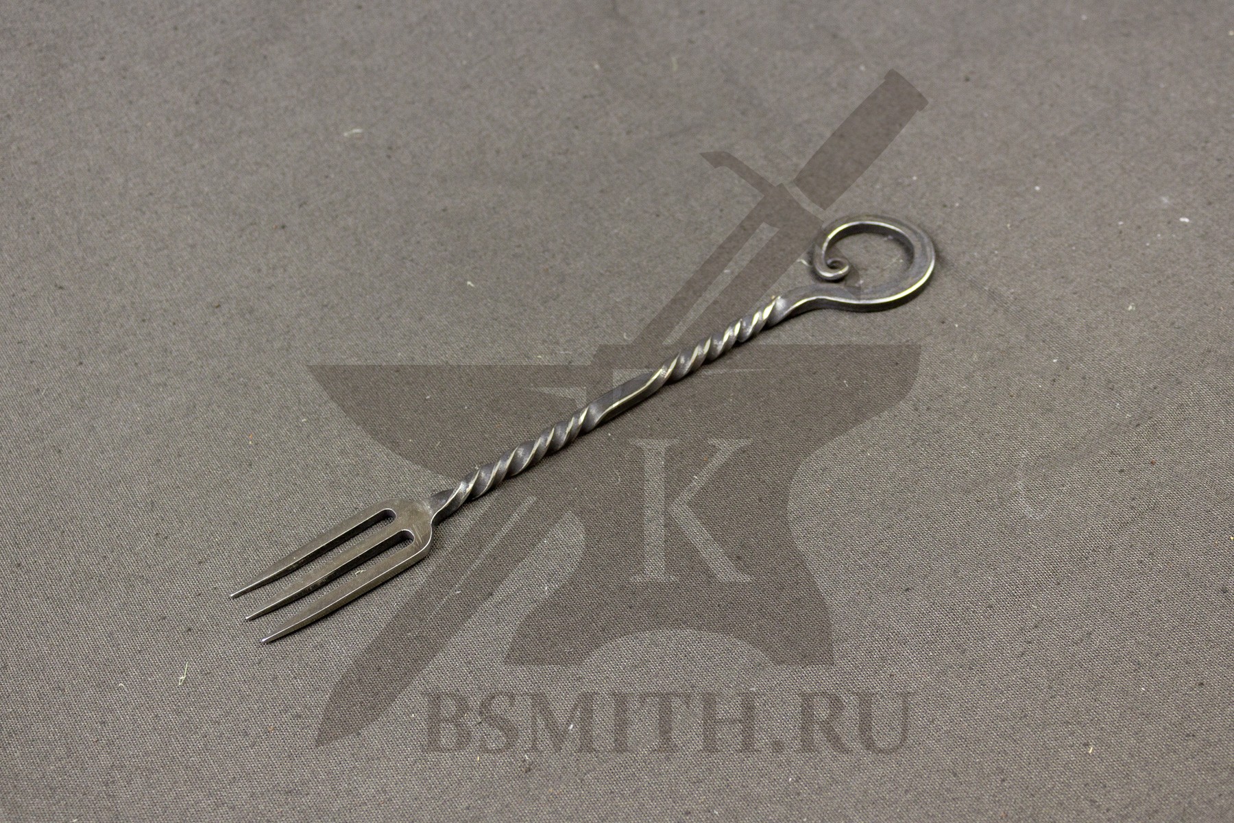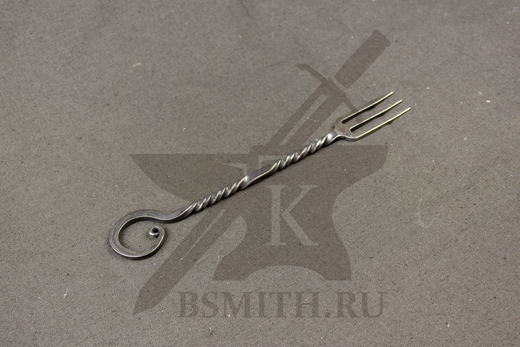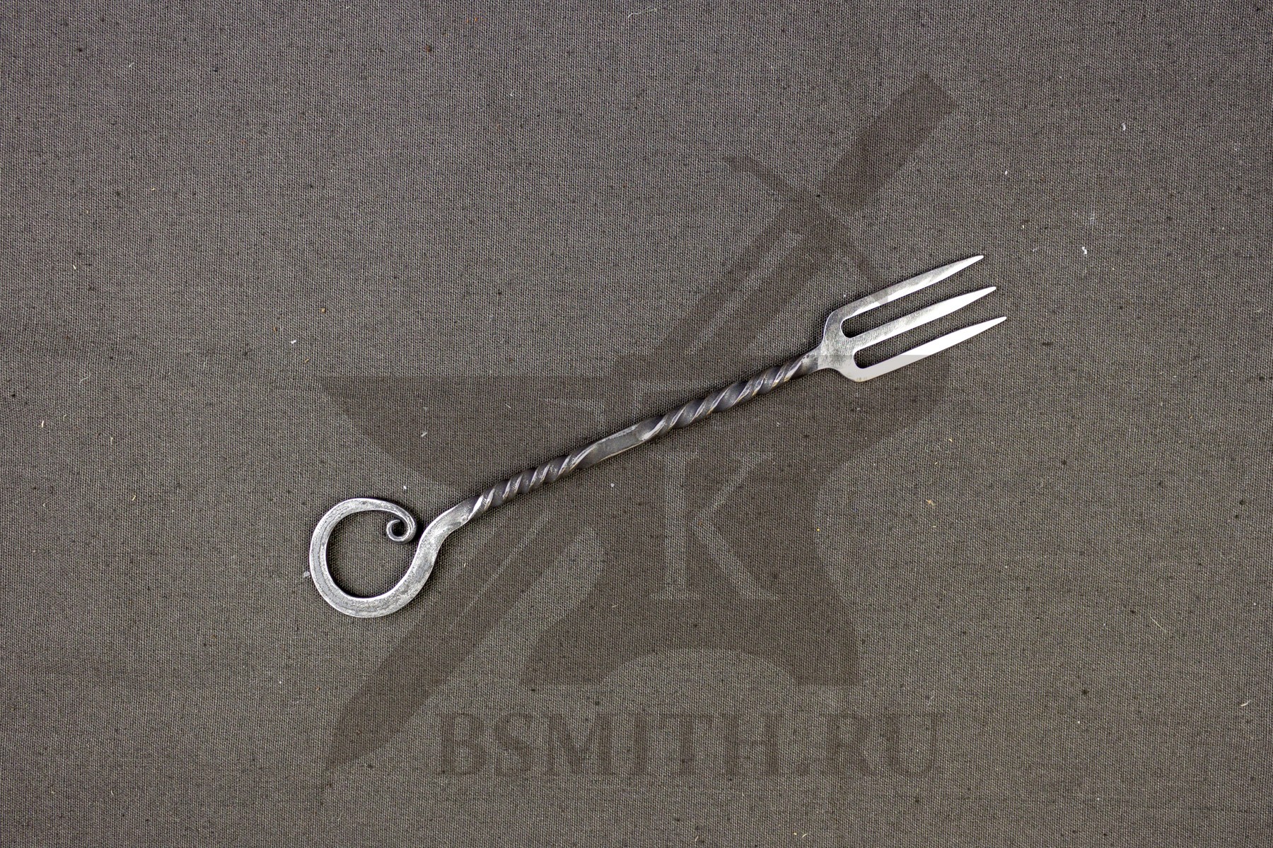 Вилка кованая с тремя зубцами. Вариант с простой торсировкой на рукояти.