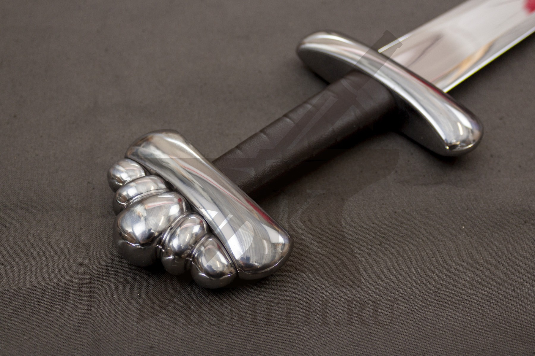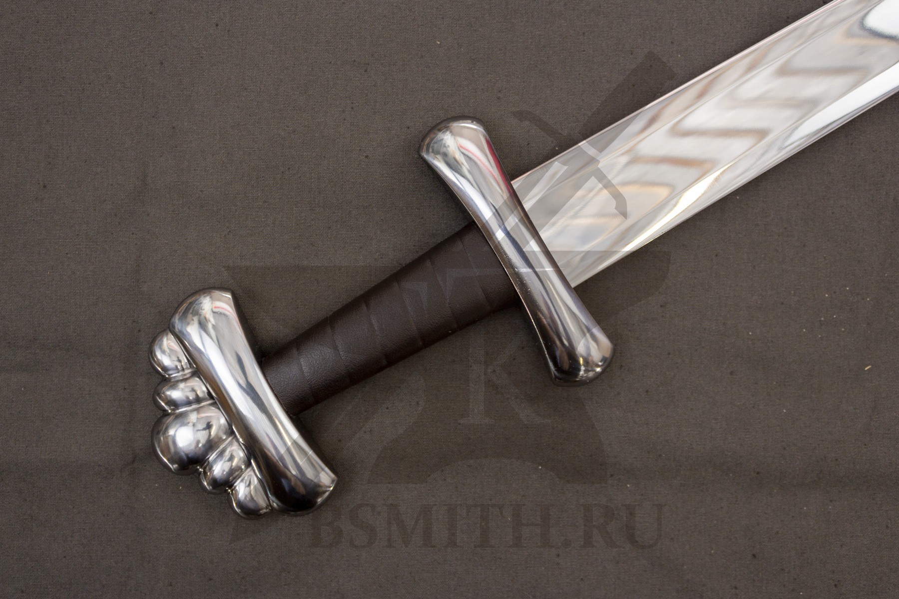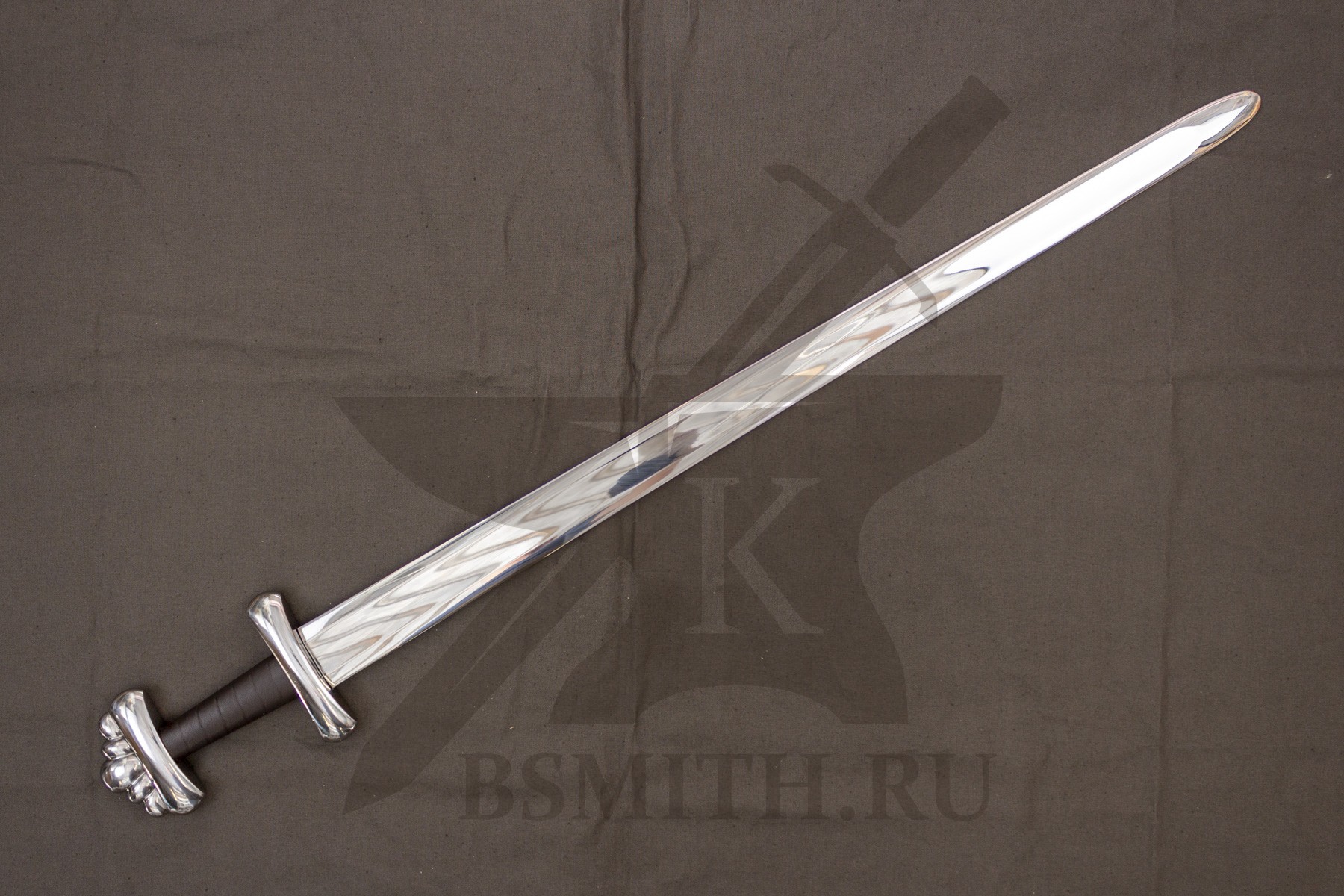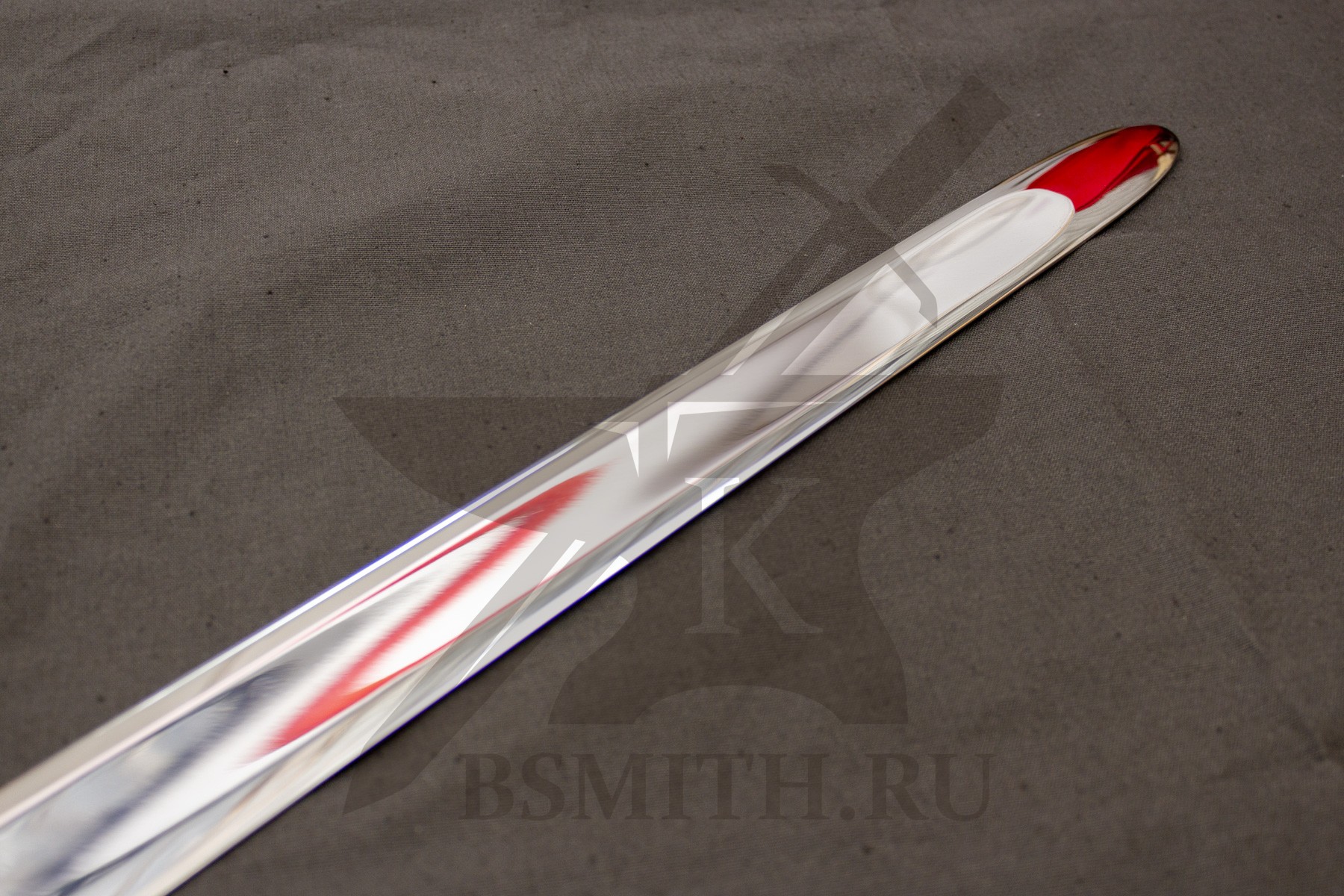 Клинок сделан из высокоуглеродистой легированной стали 65Г, с закалкой около 50 HRC, полированный. Клинок затуплен (отличие от холодного оружия), ослаблений никаких нет. Набор на эфес (навершие, гарда) стальной. Рукоять меча обмотана кожей.